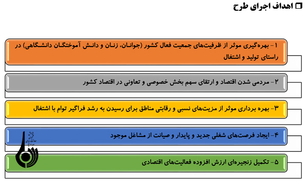 مناطق هدف اجرای طرح: تسهیلات برای روستاها با اولویت مناطق مرزی و مناطق عشایری و محروم و سرمايه در گردش برای نواحی صنعتی روستایی و شهرهای زیر ده هزار نفر جمعیت.