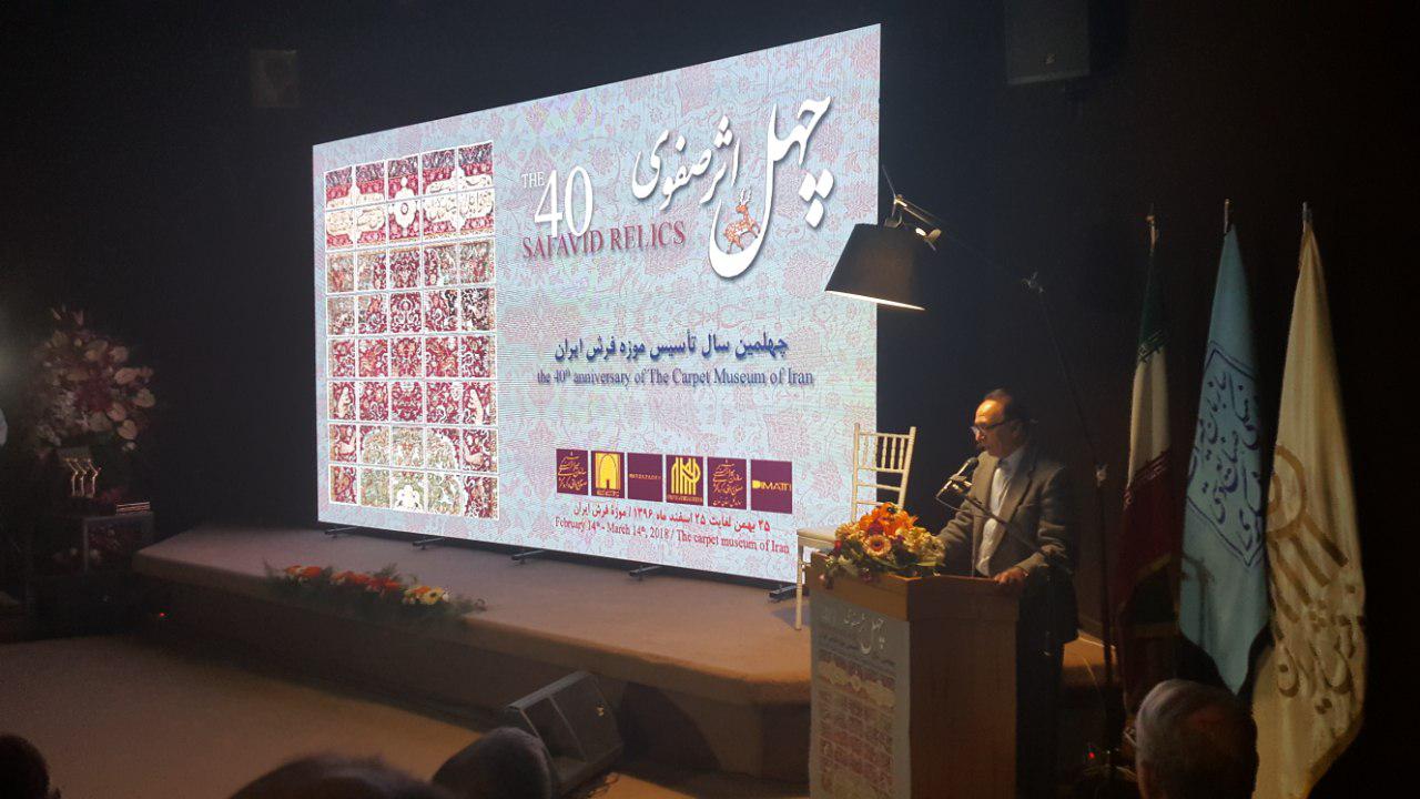 در آئین چهل سالگی موزه ملی فرش ایران، چهل فرش تاریخی از دورهی معاصر در طبقهی نخست موزه فرش به نمایش درآمدند، هفت تخته فرش از این تعداد به امانت از موزهی ملی ایران گرفته شده و دیگر فرشهای دوره صفویه متعلق به موزه ملی فرش ایران هستند.