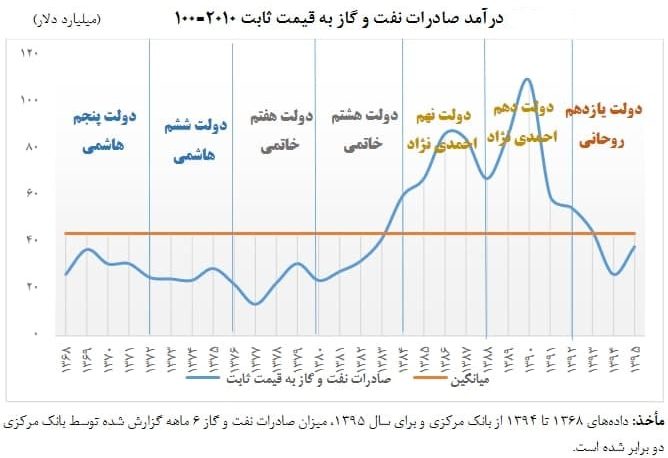 معاون اقتصادی دولت سابق اعلام کرده است :صادرات نفتی در سال 99 بالغ بر 18 میلیارد و 307 میلیون دلار بوده که این رقم در سال 92 بیش از 64.8 میلیارد دلار بود.صادرات نفتی نیز سال 92 بیش از 28 میلیارد دلار بود که در پایان سال 99 با اندکی افت به بیش از 27 میلیارد دلار رسیده است.صادرات نفتی، نفت خام و فرآوردهای آن به همراه میعانات گازی را در بر می گیرد.