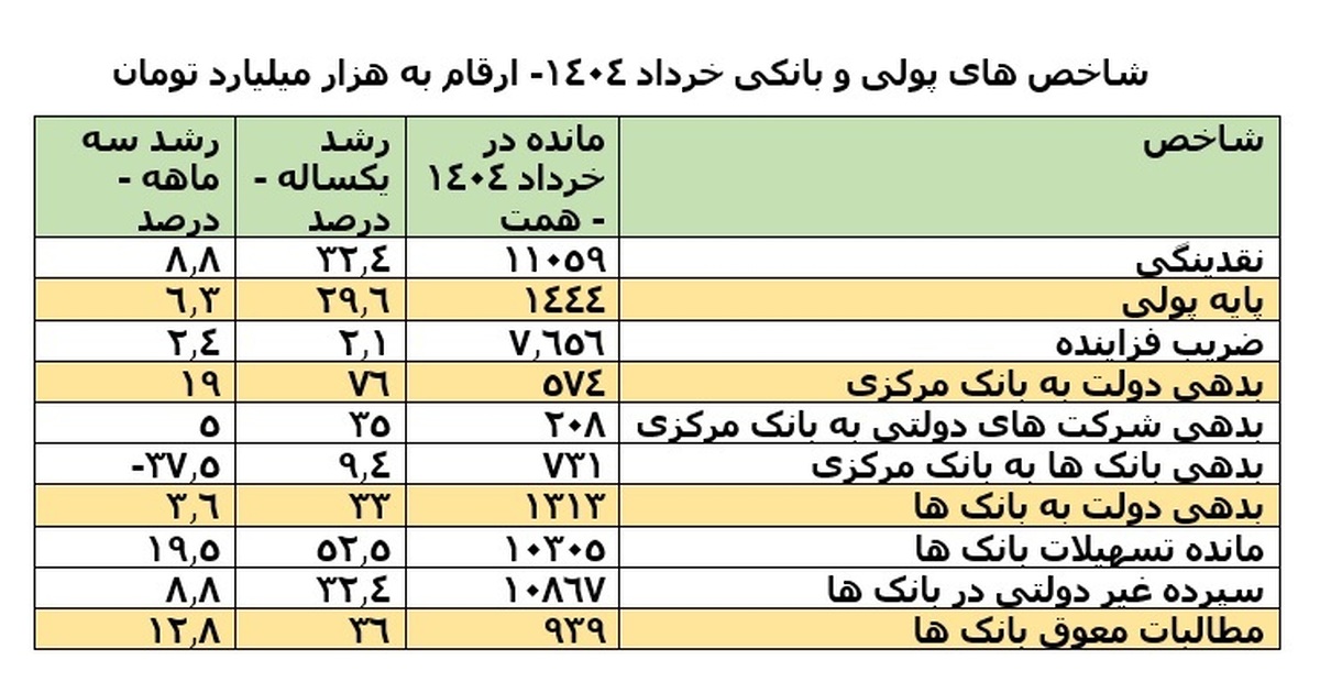 شاخص های پولی و بانکی خرداد 1404- ارقام به هزار میلیارد تومان