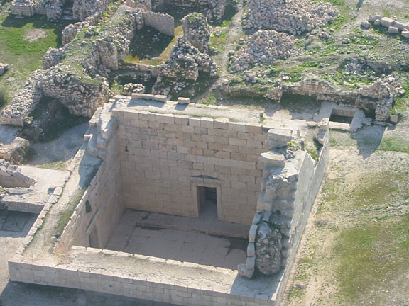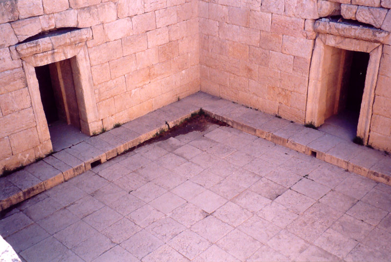 اين بناي مكعب شكل كه از سطح زمينهاي اطراف خود در حدود 6 متر پائين تر ساخته شده  از 14 متر ارتفاع آن فقط 8 متر  از سطح طبيعي اطراف نمايان بوده و بقيه سطوح به علت سردابه اي بودن در عمق زمين قرار گرفته . در صحن داخلي آن آبگير كم عمقي با گنجايش 60 متر مكعب آب ساخته شده و اطراف آن سكوئي بوجود آمده كه نيايشگران مي توانستند هنگام اجرا ي مراسم مذهبي بر روي آن گرد آيند . اين سكو از قطعات سنگهاي بزرگ حجاري شده فالبي به ابعاد 47×140 سانتي متر ساخته شده است . در وسط هر يك از وروديها مجراي آبي در داخل سنگهاي زير كف پوش درگاه حجاري شده است تا از هر سه طرف بنا، در مواقع لزوم ( احتمالا در اعياد و جشنها و مراسم مذهبي ) آب به درون معبد جاري شود . مجراي خروجي آب چاهيست كه 4 متر عمق دارد و براي احداث آن محوطه اي را به طول و عرض 180 سانتي متر  خاكبرداري نموده اند كه با 4 قطعه سنگ 90×90 سانتي متر از نوع سنگهاي كف پوش معبد پوشيده مي شده است به طوريكه هم آهنگي و روپوش چاه با كف آبگير بطور يكنواخت رعايت مي شده و مجراي خروجي آب كاملا از نظر پنهان بوده است . نحوه ورود و خروج آب در اين معبد تابع نظم و ترتيبي خاص بوده كه حتي المقدور آب معبد پاك و تازه باشد و به همان اندازه كه آب از سه طرف وارد مي شود از مجراي سه گانه به تد ريج و غير محسوس به زمين فرو مي رود . دقت و رعايت چنين امري براي گردش آب ، اهميت و احترام خاص مذهبي و توجه به نياي فرشته آب را در آن زمان كاملا نشان مي دهد ..  با توصيفي كه به عمل آمد معلوم مي شود كه دراين مكان نوازش و بازي با آب و نيايش آب بيش از هر چيز ديگري مورد توجه بوده است .