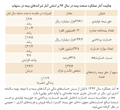 بررسی عملكرد شركت‌هاي بيمه در سال 94