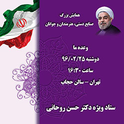 وعده ما دوشنبه 25 اردیبهشت مکان تهران سالن حجاب ساعت16:30 کمیته ویژه فعالان صنایع دستی دکتر روحانی
