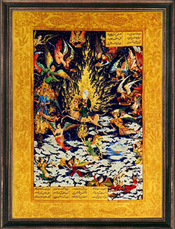 در پیش رو ریزبافت ترین تابلو فرش جهان را می بینید که هنر دست آقای حسن نظامی دوست می باشد. طرح این تابلو فرش از نقاشی مینیاتوری استاد سلطان محمد نگارگر گرفته شده و لحظه معراج پیامبر اکرم (ص) را روایت می کند. نظامی دوست برای بافت این تابلو فرش بی نظیر ۴ سال زمان گذاشت و در نهایت تابلویی با ابعاد ۲۴ در ۱۸ سانتی متر و با۱۰۸۵۶۲۵ گره پدید آورد. باید بدانید که ریزبافت ترین تابلوفرش جهان در ۷ سانتی متر مربع خود، ۳۷۵ گره دارد!